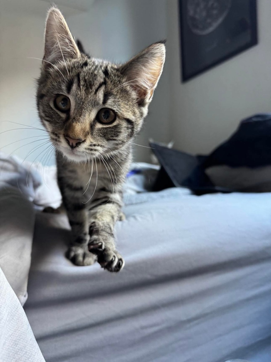Bran is the confident little shadow you didn’t know you needed. He’s curious about everything, always trotting behind you to see what you’re up to. Big on purrs and even bigger on cuddles, Bran makes sure he’s always right in the middle of the action and your heart.