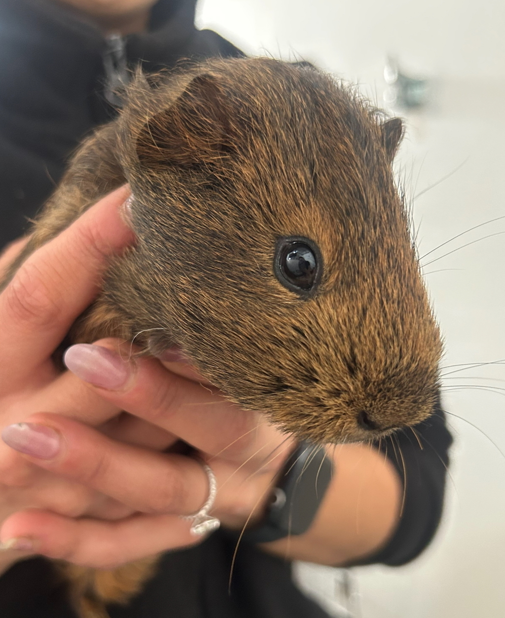 Walnut would flourish in a home with another guinea pig friend and a family who will adore her and appreciate her charming antics. If you think you have the perfect pocket (or slipper) for this little piggy, get in touch to meet Walnut today.