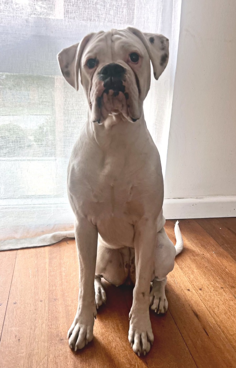 This sweet baby girl is full of life, love, and boxer goofiness! She is your typical playful pup bursting with energy.