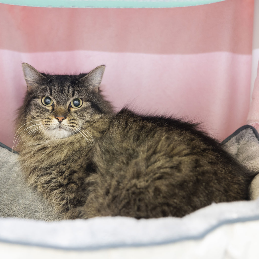 Hello there, I'm Muss. I may be a bit timid at first, but I promise I'm the sweetest girl you'll ever meet. I enjoy quiet afternoons, sunlit corners, and the soft hum of a peaceful home. My favorite pastime is curling up with a good book...well, with you reading and me purring contentedly. I'm not one for loud noises or fast movements as I have only lived with a senior person, but I adore gentle strokes and soothing whispers. I know it might take me a while to come out of my shell, but I promise I'm worth the wait. If you're looking for a loyal companion who will cherish your quiet moments as much as your lively ones, then I'm your girl. Let's create a symphony of purrs and laughter together.