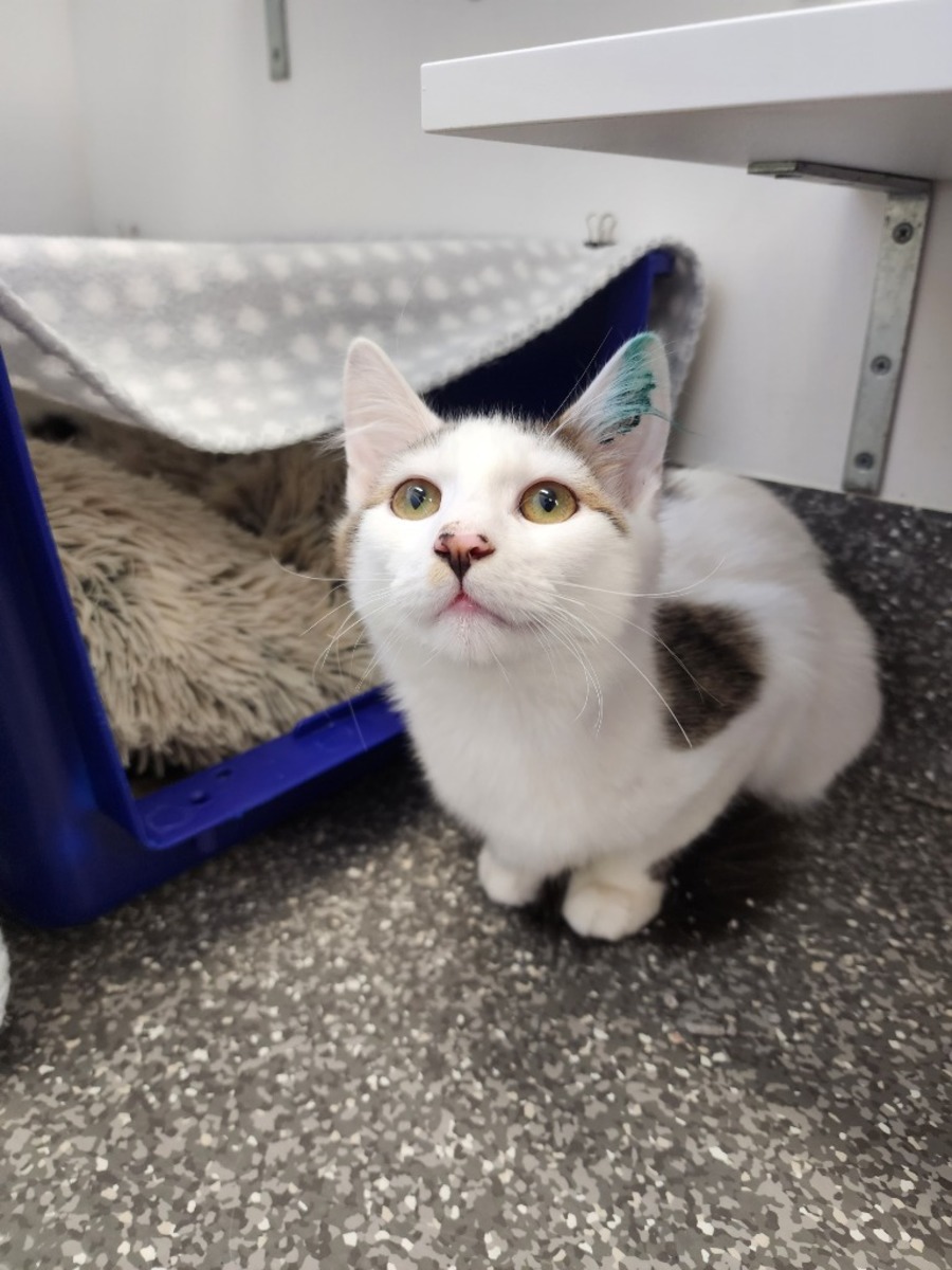Meet Croissant, the charming kitty with a heart of gold! While Croissant may seem shy at first, their gentle and affectionate nature shines through once they settle in. This sweet cat is the perfect companion for someone with a little patience and a lot of love to give.