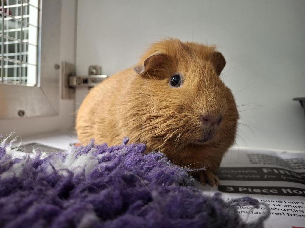 Say hello to Cinnamon, a beautiful guinea pig with a soft, cinnamon-colored coat and a gentle spirit. This little lady may be a bit nervous at first, but with a calm, patient home, she's sure to blossom into a wonderful companion.