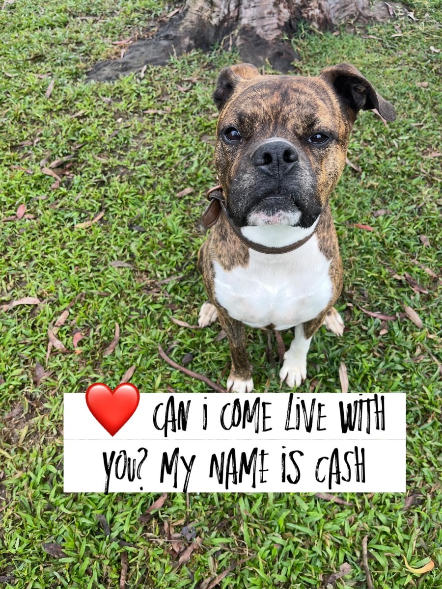 Since arriving at our open-air shelter, Cash has truly begun to thrive. He enjoys soaking up love and attention, and he eagerly plays with other dogs. Notably, Cash has also shared his living space harmoniously with a cat, showcasing his adaptable and amiable nature. Loyal, loving, and full of Boxer energy, he's eager to build a deep and meaningful bond with those who welcome him into their home.