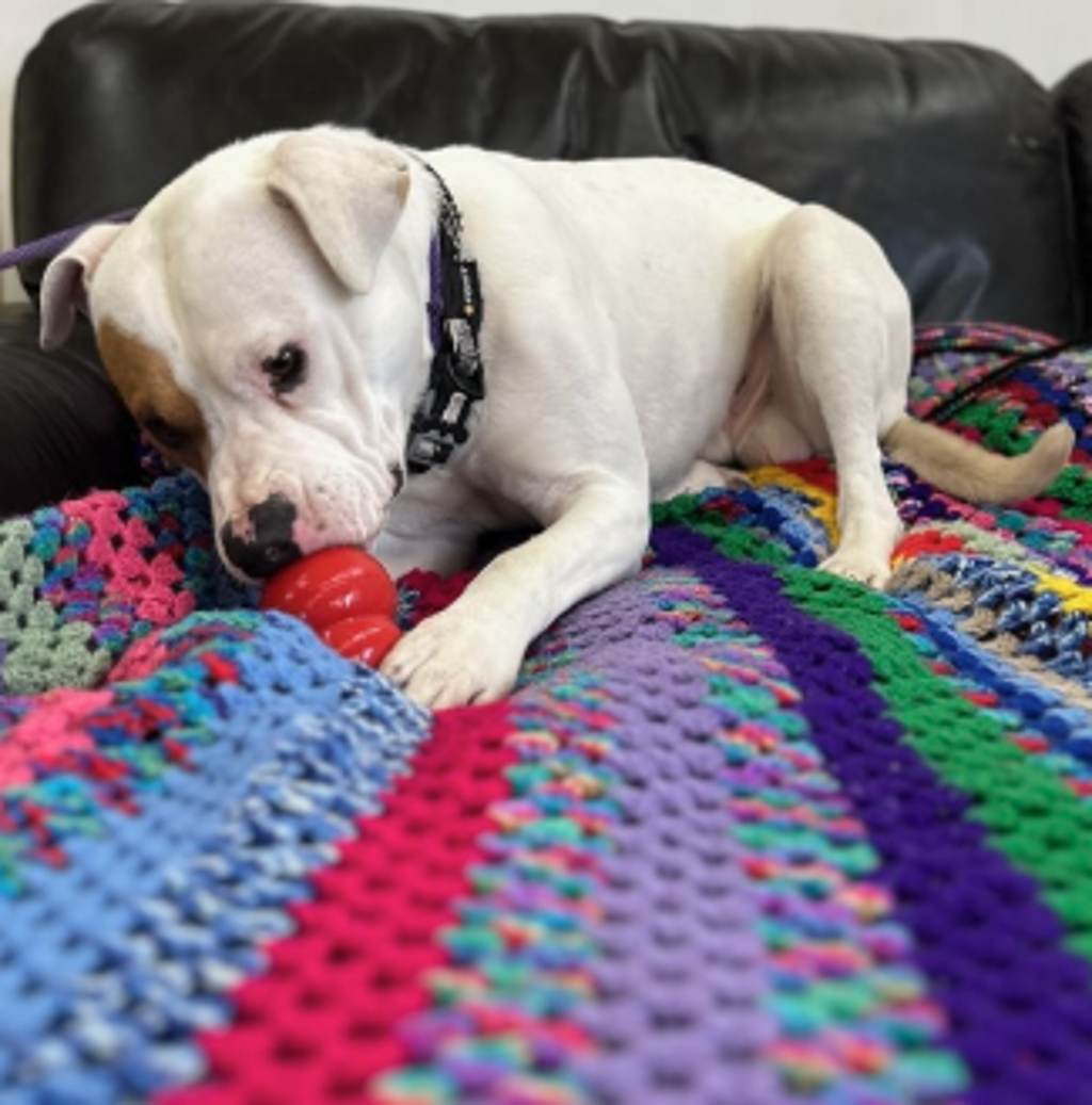 Ahoy there, landlubbers! Set your sights on Timmy, a two-year-young American Bulldog with a heart as grand as the open sea and muscles worthy of any pirate legend! With his striking white coat and a bold tan patch over one eye, Timmy looks every bit the part of a swashbuckling adventurer-he's convinced he's a pirate, and honestly, we don't have the heart to tell him otherwise.