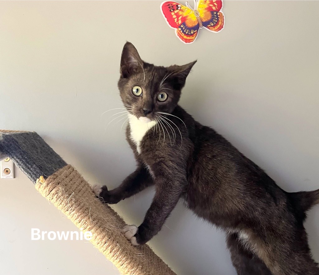 In addition to his striking appearance, Brownie is a sweet and affectionate feline who will capture your heart with every purr and nuzzle. He seeks out attention and loves to cuddle, making him an ideal companion for cozy afternoons on the sofa. Whether you're enjoying a quiet evening at home or tackling your daily routine, Brownie's loving nature ensures he's never far from your side.