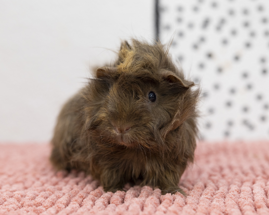 If you're ready to open your home to a sweet companion and have the time to dedicate to her social and grooming needs, Tipsy might just be your perfect match. Bonus points if you have another friendly female piggy or plan to adopt one with her!