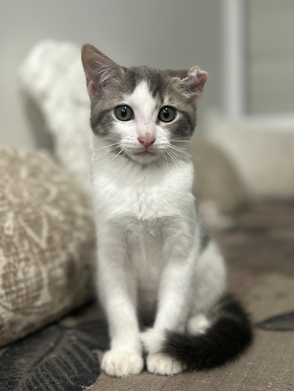 Hello, I'm Cauliflower! I got the name as I came into care with a cauliflower ear, it doesn't bother me one bit though! I'm an absolute goofball, always ready to make you laugh with my silly antics! I do get crazy zoomies where I puff up and run sideways, I'll definitely keep you entertained! I get along great with other cats but I do like to play rough so I would need a very tolerant friend! Although I do think I'm big enough to take on any dog, nothing scares me! So I would need a home with no stinky dogs please! I'm a bundle of energy, always ready to play and explore! My playful nature is infectious, and I promise to fill your life with joy and laughter. If you're looking for a furry friend who can brighten up your days, then I'm your guy! I can't wait to meet you!