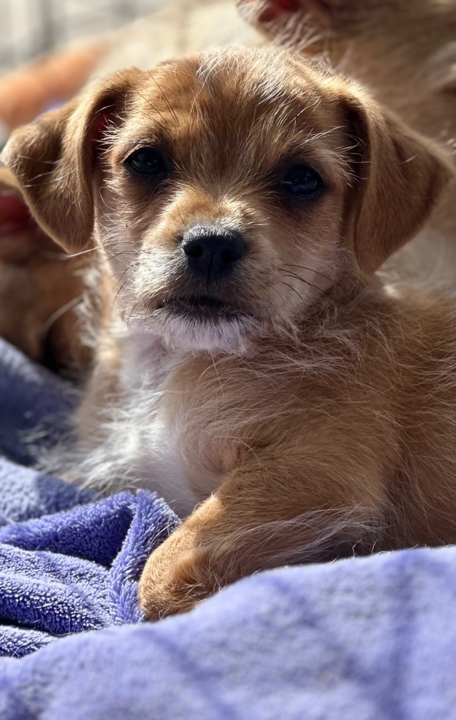 Scout is a wire haired terrier cross who is currently 1.6 kg. He will only be small on maturity, his mother is 3.9 kg.