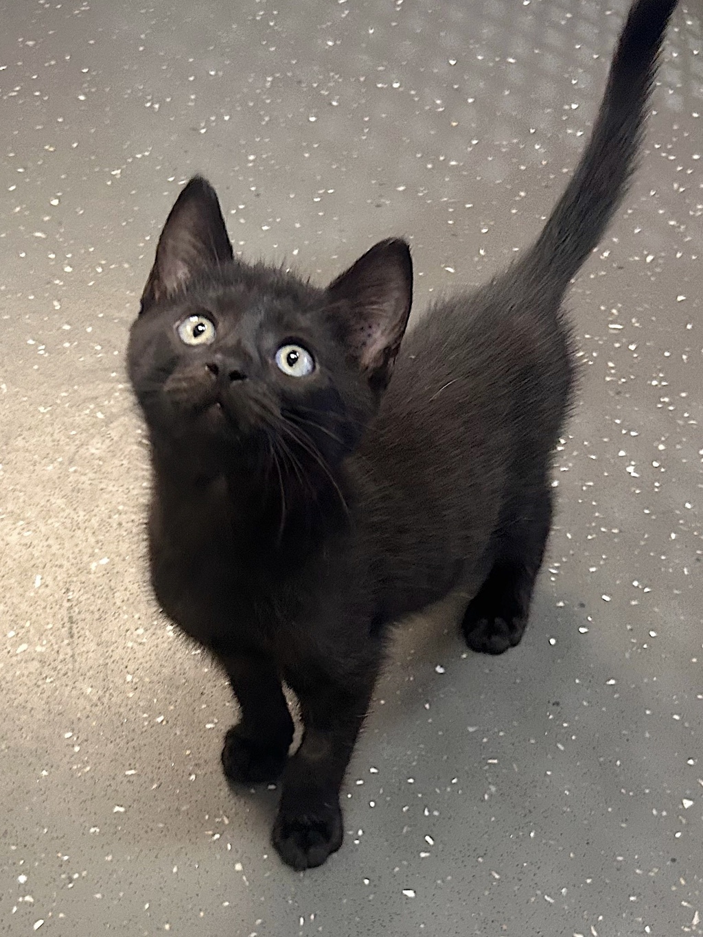 I have been in foster care with the rest of my litter and just returned to the RSPCA to find my new home, hopefully with you. I am a soft-furred handsome black baby and very lovely to stroke. I am very confident, loving to explore and play on cat towers and run in and out of tunnels. I get on well with other kitten litters in the house as well as adult cats and a small dog that roams around me and I have no fear. I am very friendly, coming up on the couch to spend time with my foster family when the play time is over. If you want a fun-loving kitten that is well socialised, then I am the one for you.