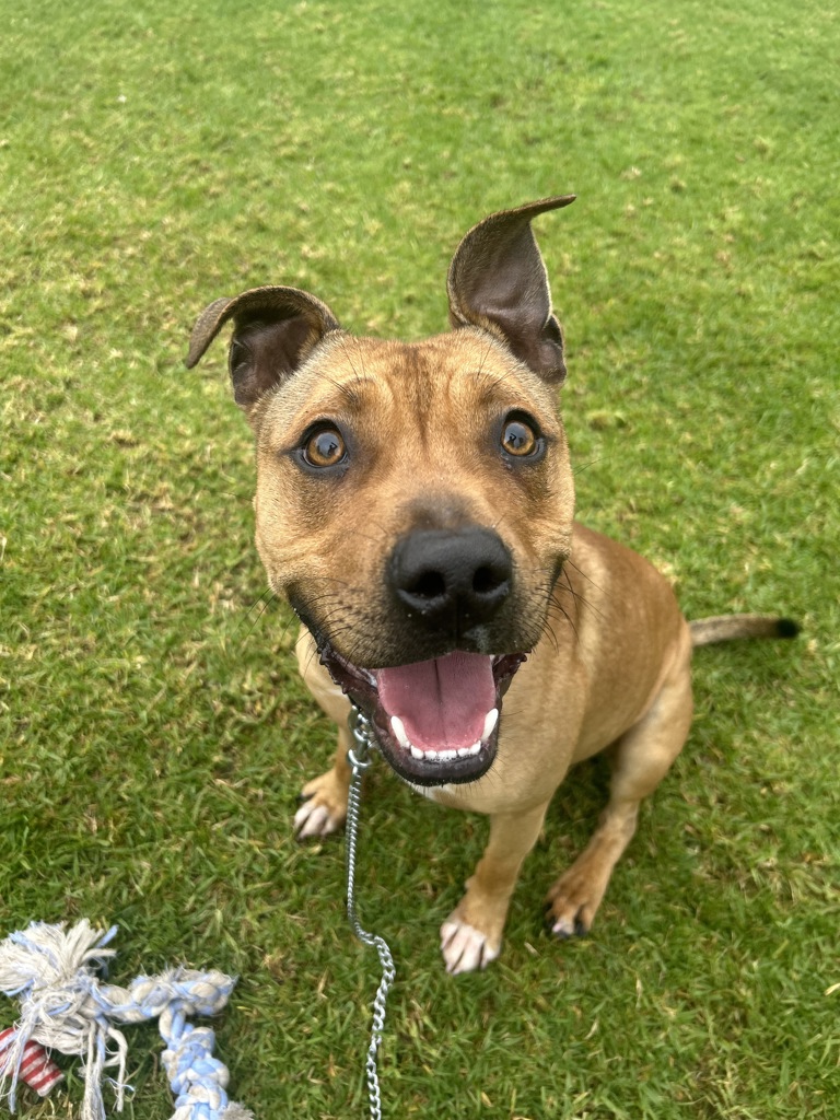 I'm a proper character - goofy, playful, and full of love. I'll keep you laughing with my silly antics, and I promise there's never a dull moment when I'm around. I'm still learning a few manners (I get very excited sometimes!), but I'm smart, eager to please, and respond really well to training - especially when there's food involved!