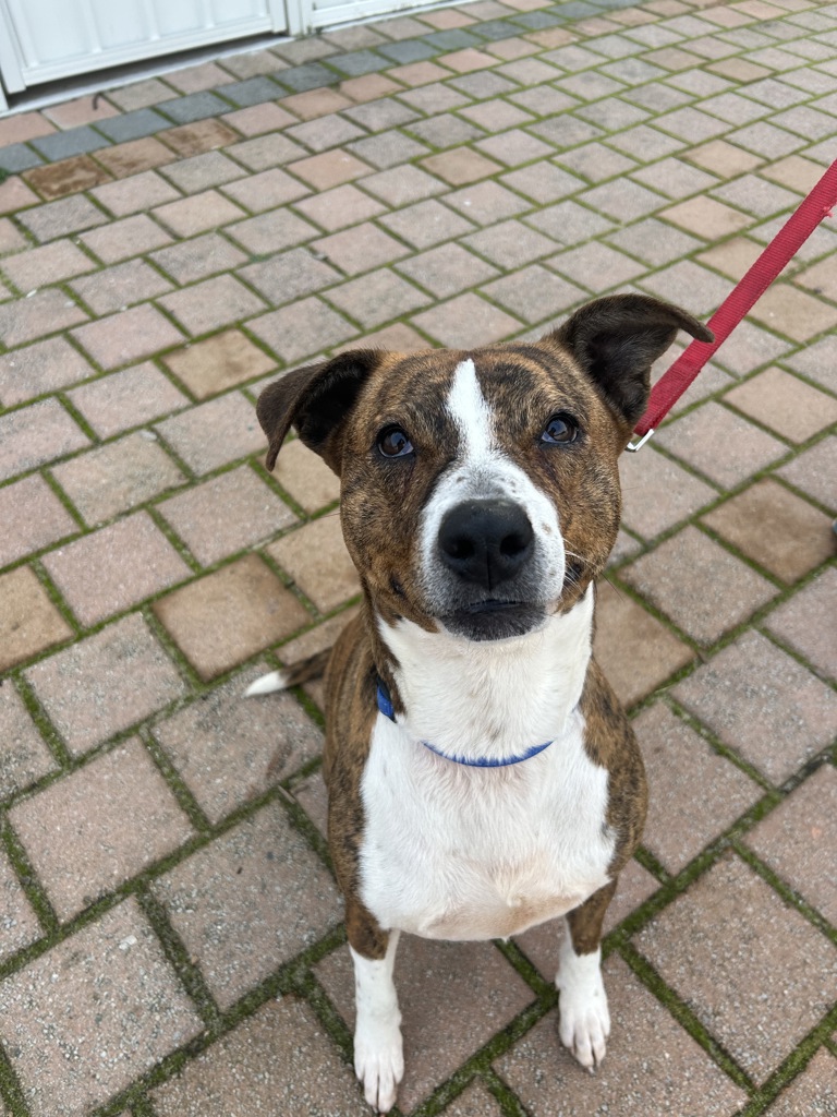 Hiya! I'm Dodge - a Staffy girl with springs in my paws, a wiggly bum, and enough energy to power a small city! I'm all about zoomies, belly rubs, and being the absolute centre of your universe (don't worry - I've got enough charm to deserve it).