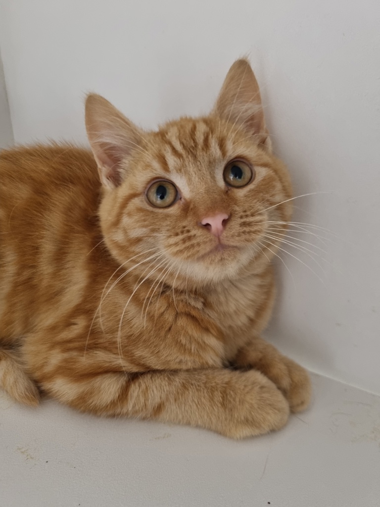 This ginger gem is rich in charm and overflowing with love. Cash is a cuddle connoisseur - he'll snuggle up in your arms like it's his favorite place (because it is!). With a heart as golden as his fur, he's playful, affectionate, and always ready to deposit a little joy into your day. Whether he's chasing toys or snoozing in a sunbeam, Cash is pure comfort and cuteness.