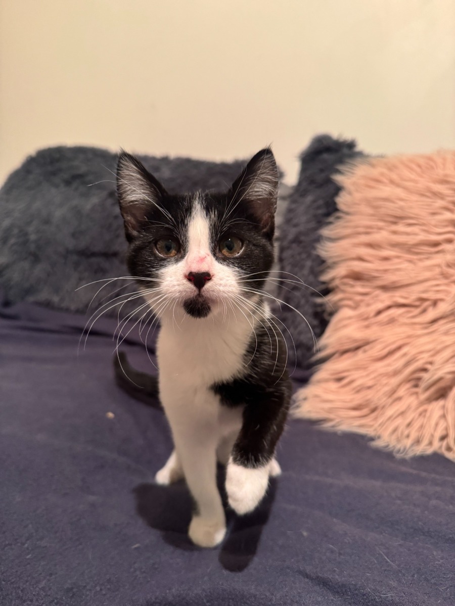 Like any kitten, June is full of playful energy. She’s a bit cheeky, loves to bat toys around & even carries her favourites with her like prized possessions. When playtime winds down, she’ll happily curl up on you for a nap or stay close by to keep you company.