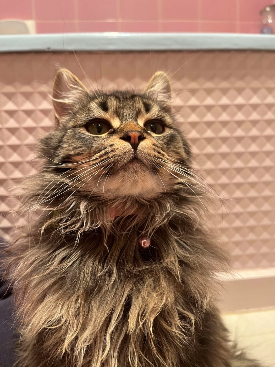 While he might be shy at first, a little treat 🍗, some toys 🧸, and a bit of patience 🕰️ will win him over. Not to mention, he’s an expert scratch post frequenter 🪵, professional litter box user, and a sweet talker — he has THE cutest trills! 🎶💬