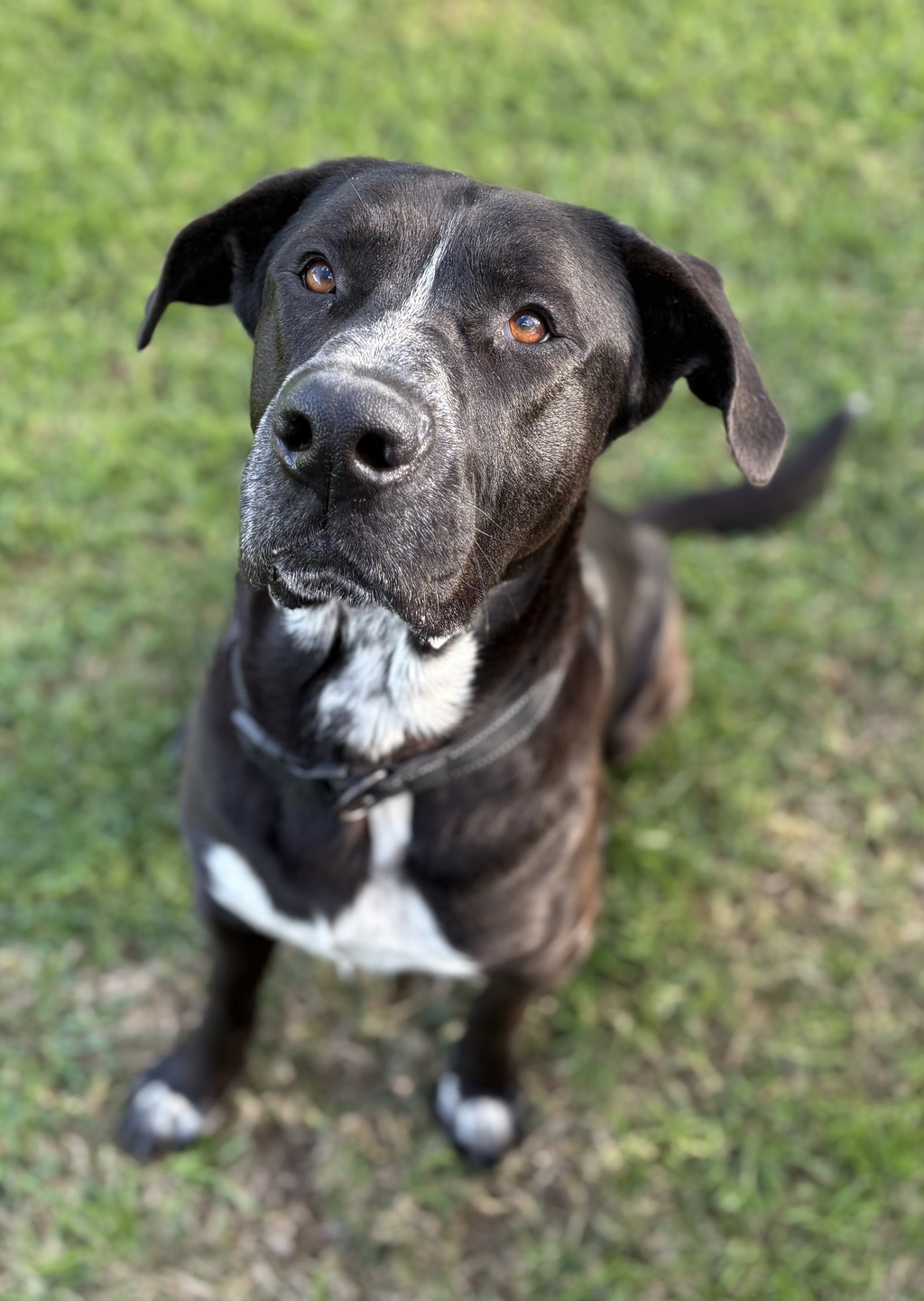 I'm a big softie, and I'd love nothing more than to hang out by your side, whether we're going for walks, playing in the yard, or just relaxing on the couch