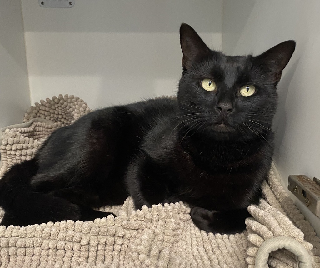 Mrs Kit-E-Cat isn't just a cat... she's a distinguished lady with a name that sounds like she owns a posh estate (or at least the comfy corner of your couch). With her sleek black fur and dazzling eyes, she looks like she's stepped straight out of a feline fashion magazine, and she knows it!