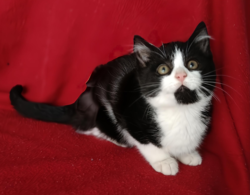 Sox is a 3-month-old black and white domestic short hair kitten bursting with energy and charm. This confident little girl is as outgoing as they come - always ready to play, explore, and make new friends. Whether she's chasing toys or pouncing on her next adventure, Sox brings endless fun wherever she goes.