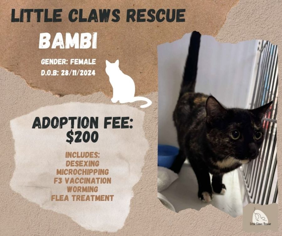 Meet Bambi, the cat with an insatiable zest for life and a penchant for discovery! Bambi is a lively and spirited feline who finds joy in every adventure that comes her way. Whether it's exploring new corners of your home, climbing to new heights, or chasing after the moving shadows that dance across the floor, Bambi’s curiosity knows no bounds.