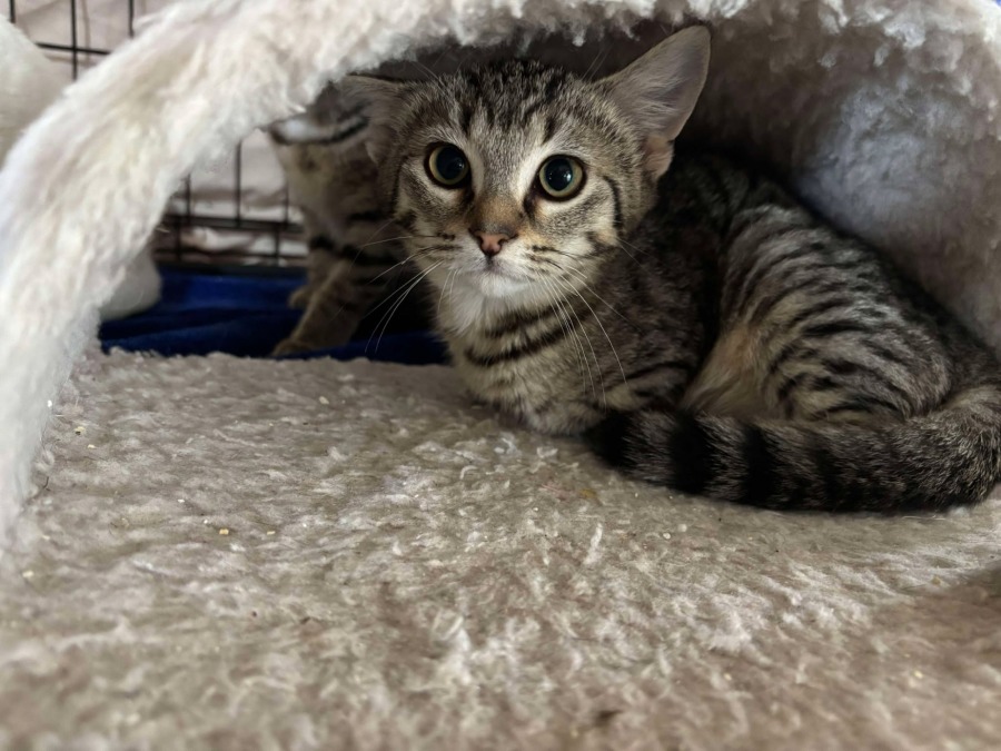 Meet Ravioli, a tiny but mighty kitten with a personality that far exceeds her petite size. The smallest among her sisters, Ravioli boasts a bigger attitude than both of them combined. With a spicy spirit and a gentle soul, she encapsulates a perfect blend of sass and sweetness.
