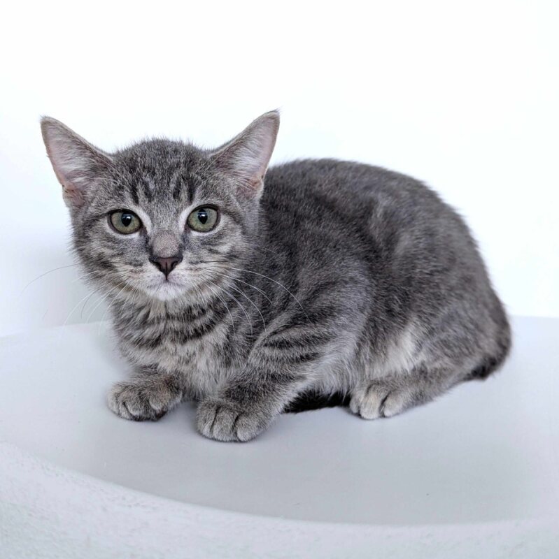 Hello there, my name is Sam! I'm a playful 3-month-old male kitten with a shiny coat of Domestic Short Hair. My energy level is medium, so I'm perfectly balanced - not too hyper, not too lazy, just right for any family. I've not met any children yet, but I'm a friendly little guy and I'm sure I'd love them. Being a kitten, I'm full of curiosity and love to explore. I can make a toy out of anything, and my playful antics are sure to keep you entertained. I enjoy a good nap too, so expect to find me curled up in the coziest corners of the house. Despite my young age, I'm quite the little gentleman. I have a heart full of love to give and can't wait to find my forever family. If you're looking for a furry friend who's just as sweet as he is fun, then I'm your guy! Let's start our adventure together!