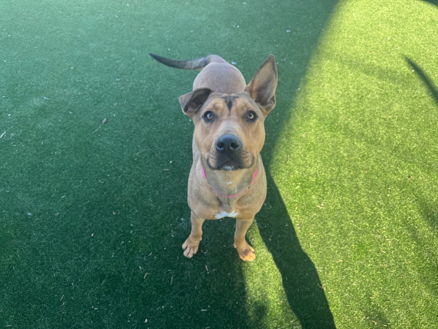 Thimble is a happy-go-lucky sweetheart who is ready to steal your heart. While she can be a little shy at first, this friendly girl loves everybody – she’s affectionate and wants so shower you with cuddles and would suit a home with dog savvy children.