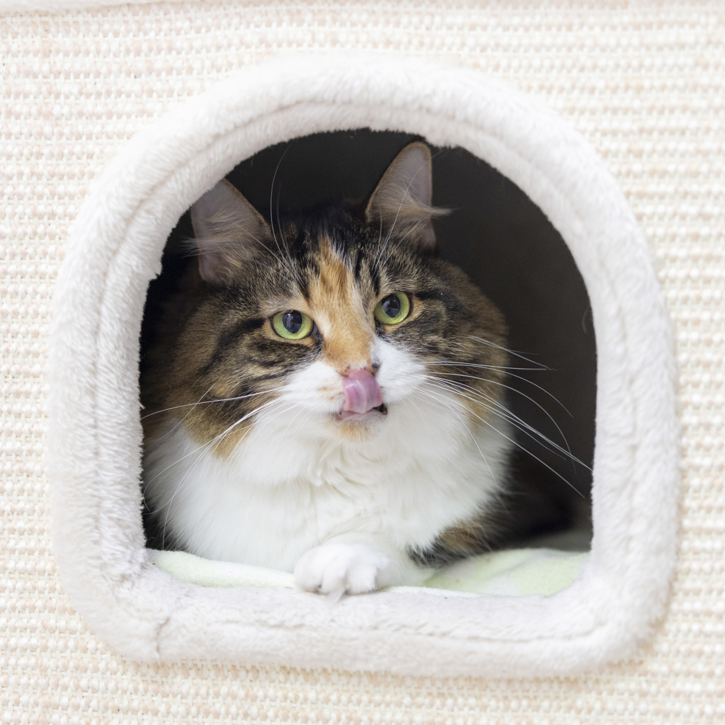 Miss Muffin isn't here to make friends-she's here to rule. This fabulous torbie is about 90% fluff, 10% attitude, and 100% not interested in sharing her kingdom with other cats.