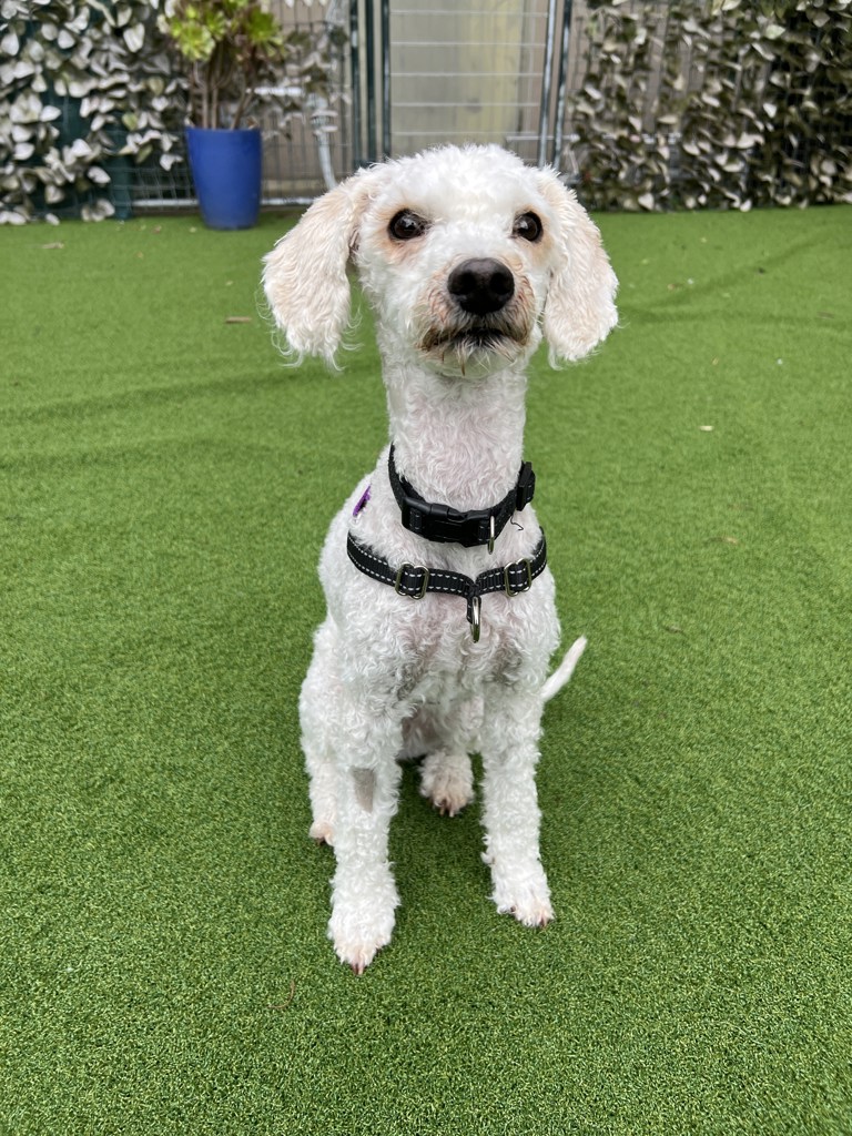Sweet Pea is currently working with a professional trainer and behaviour vet to help build her confidence. She's on daily behaviour medication to support her as she learns to manage her fear and anxiety. On walks, she can be reactive to dogs or people, so she'll need ongoing support from patient carers who can stick to a consistent plan.