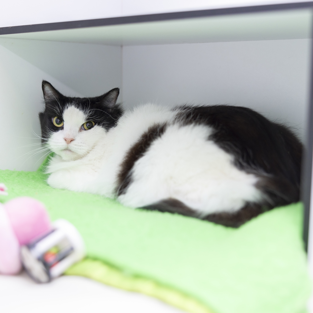 Hello, I'm Cleopatra. I might be a bit shy at first, but once I get to know you, I promise to be the sweetest companion. I enjoy quiet moments and peaceful surroundings. I love the feeling of a gentle hand stroking my back and the soft hum of a friendly voice. I might not be the first one to greet you, but give me a chance and I'll show you my loving nature. I'm not just a cat, I'm a friend, a listener, a confidante. Adopt me, not just for a pet, but for a loyal and loving friend.