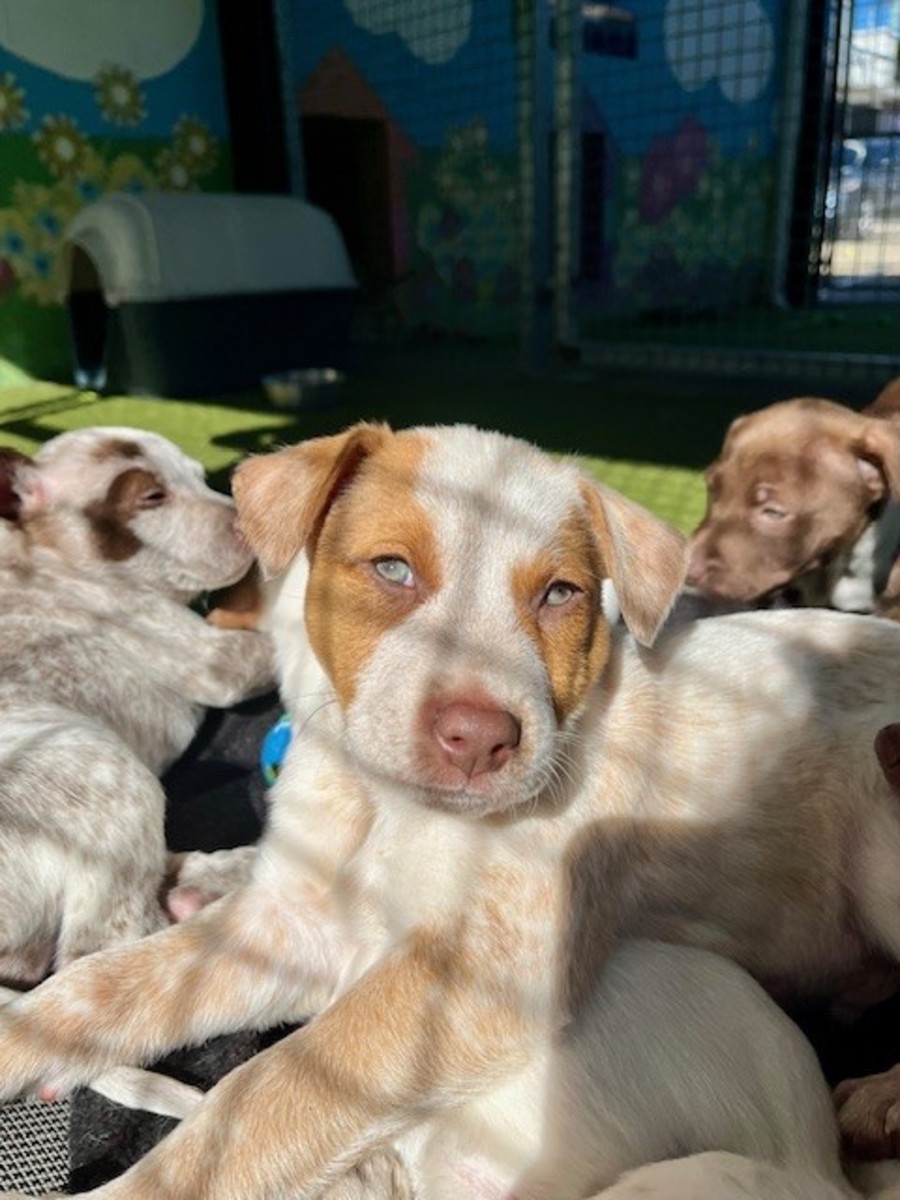 Meet Chip, a charming Cattle Dog cross puppy with a distinctive white dappled coat and adorable red patches around each eye. From the moment you meet him, Chip's sparkling personality and irresistible cuteness will capture your heart.