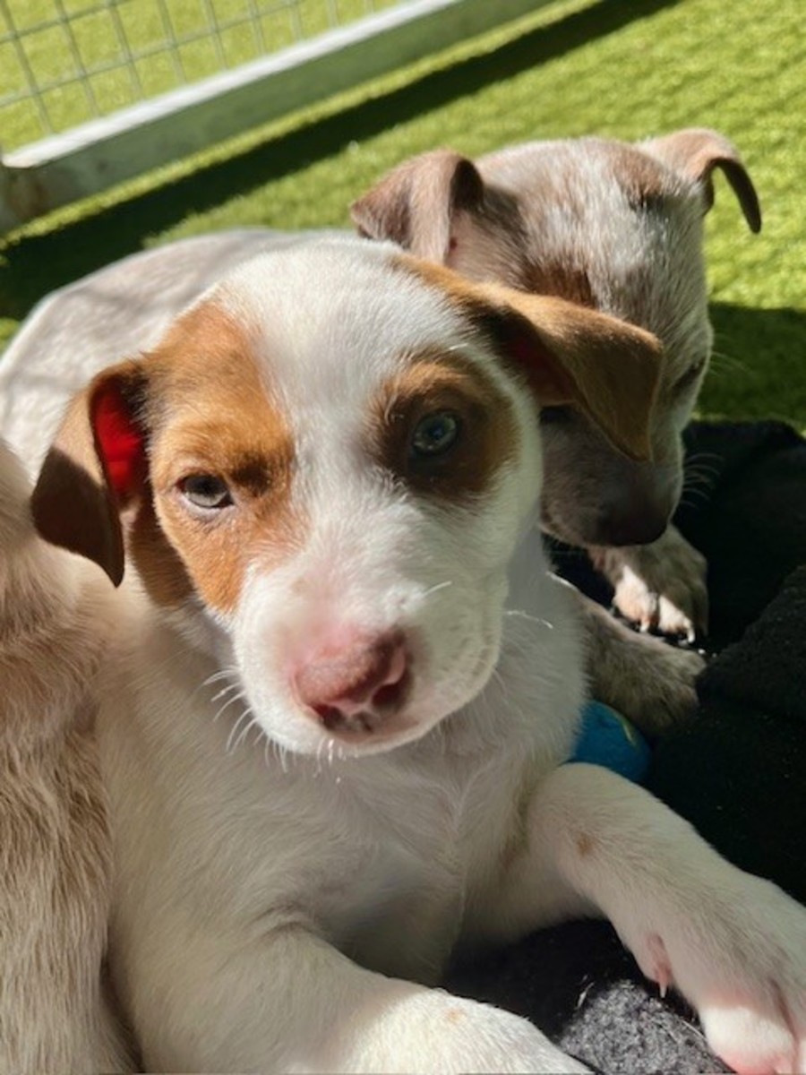 Meet Cadbury, a male cattle dog cross puppy with a charming white coat adorned with striking red markings. He's a sweet and gentle soul who's ready to melt your heart with his playful antics and affectionate nature.