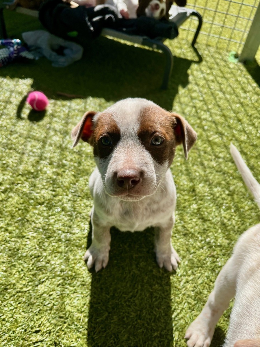 Meet Cookie, a darling female cattle dog cross puppy with an irresistible brown and white coat.