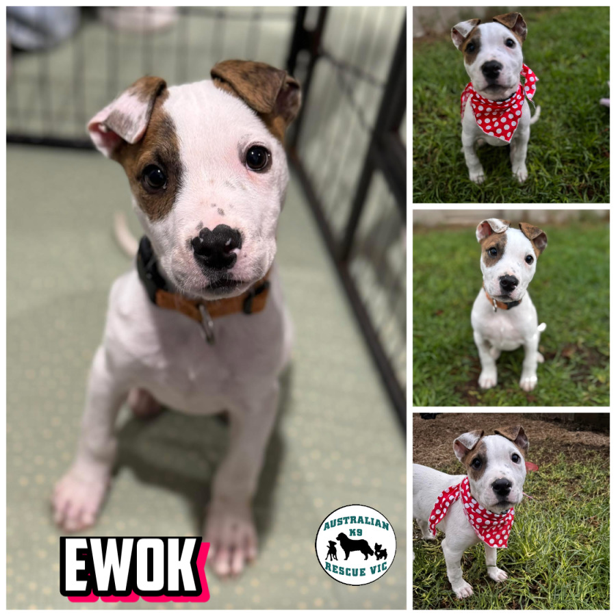 Look no further than Ewok, our charming little Staffy mix who is sure to steal your heart.