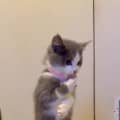 Given her young age, she will need to a cat sibling to show her the ropes and grow up with. She currently lives in a household with a cat and dog and has shown particular interest in her foster sister.
