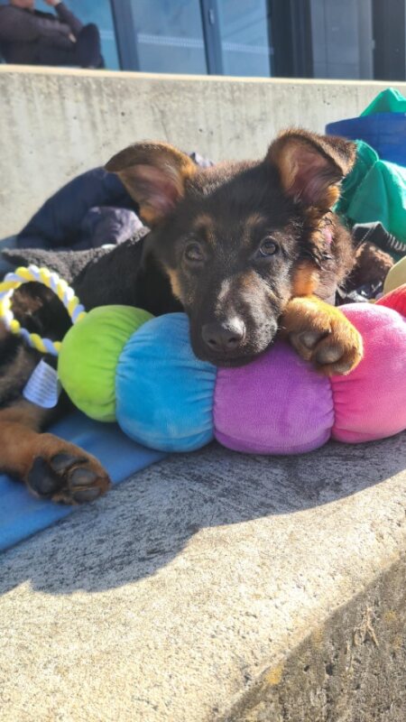 Hi there, I'm Lotus, a sweet and energetic German Shepherd puppy. I'm just 2 months old and already full of life and curiosity. I'm looking for a home where I can continue to grow and explore. I'm pretty easy-going; I don't mind whether you have other pets or kids, I get along with everyone! I'll need someone who can commit to helping me learn about life. I'm young and there's so much I haven't seen or experienced yet. Daily adventures, even if it's just a walk around the block, will go a long way in shaping me into the loyal and intelligent German Shepherd I'm destined to be. I'm best suited for a home with a moderate energy level, but don't worry, I can keep up with those who are more active as well. As for your work hours, average is perfect for me. I'll miss you when you're gone, but I'll also enjoy some downtime to rest and recharge. If you think we might be a perfect match, I'd love to meet you. I promise to bring lots of love, fun, and puppy kisses into your life. Let's make some beautiful memories together!