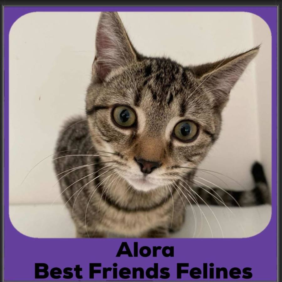 Meet Alora, the gentle cuddlebug! Alora is a quiet soul with a soft spot for cozy laps and gentle affection. She’s the kind of kitten who won’t demand your attention 24/7, but once she has it she will melt into you like warm butter on toast. Her favourite pastime? Time spent curled up next to you, purring softly while you read, relax, or just enjoy her calming presence. Though a touch shy at first, Alora warms up quickly and bonds deeply. She’s not one for wild antics, instead she’s all about peaceful moments and quiet companionship. Alora plays well with other kittens and household cats, especially her twin sister Mavis. She would do beautifully in a calm home where she can be someone’s cherished fur-friend—especially if that home has the occasional morsel of roast chicken as a treat. Alora is looking for a forever lap (or two!) and if you are searching for a sweet, low-key kitten with an old soul, Alora may be your perfect match.