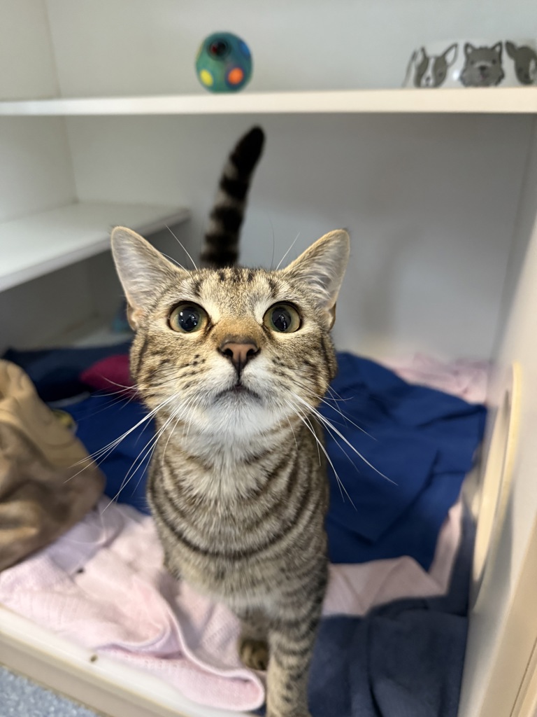 Hi there! I'm Pascal - a sleek, sweet, and slightly mischievous young cat looking for my forever home. At just 10 months old, I'm the purr-fect mix of playful kitten energy and laid-back lap cat. Whether it's chasing a toy mouse or curling up in a sunny spot, I'm happy as long as I'm near you.