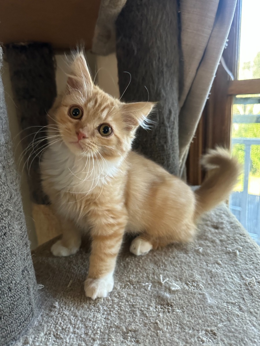 When she’s not munching snacks or carefully selecting her next toy (springs are a fave, and she proudly parades them around the house), Broccoli is all about cat company. She adores the older cats in the house and becomes their fluffy little shadow, making sure they never go anywhere alone - EVER.