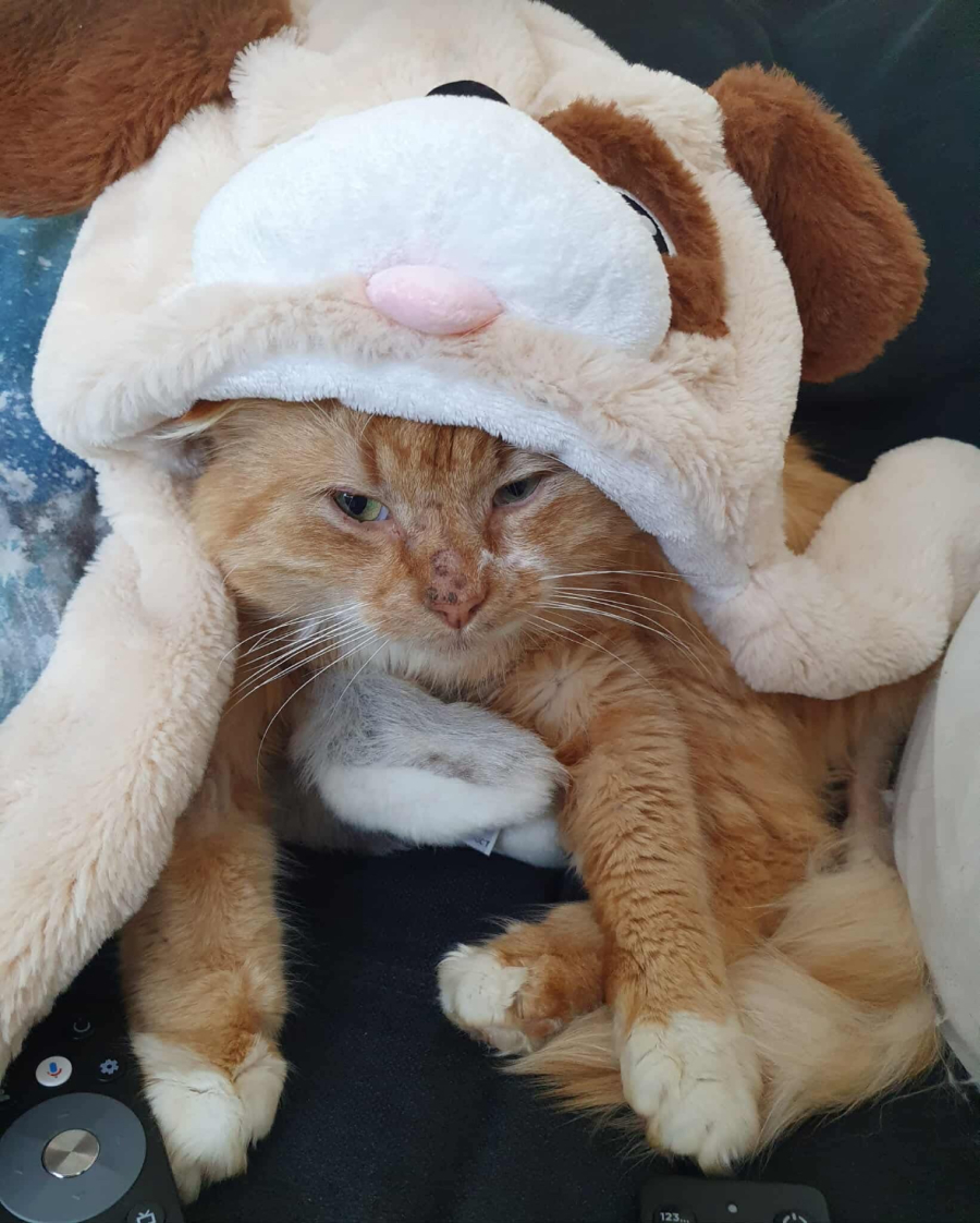 He came into care with Stud Tail, which has been fully treated, and his fur is already on the way to growing back.