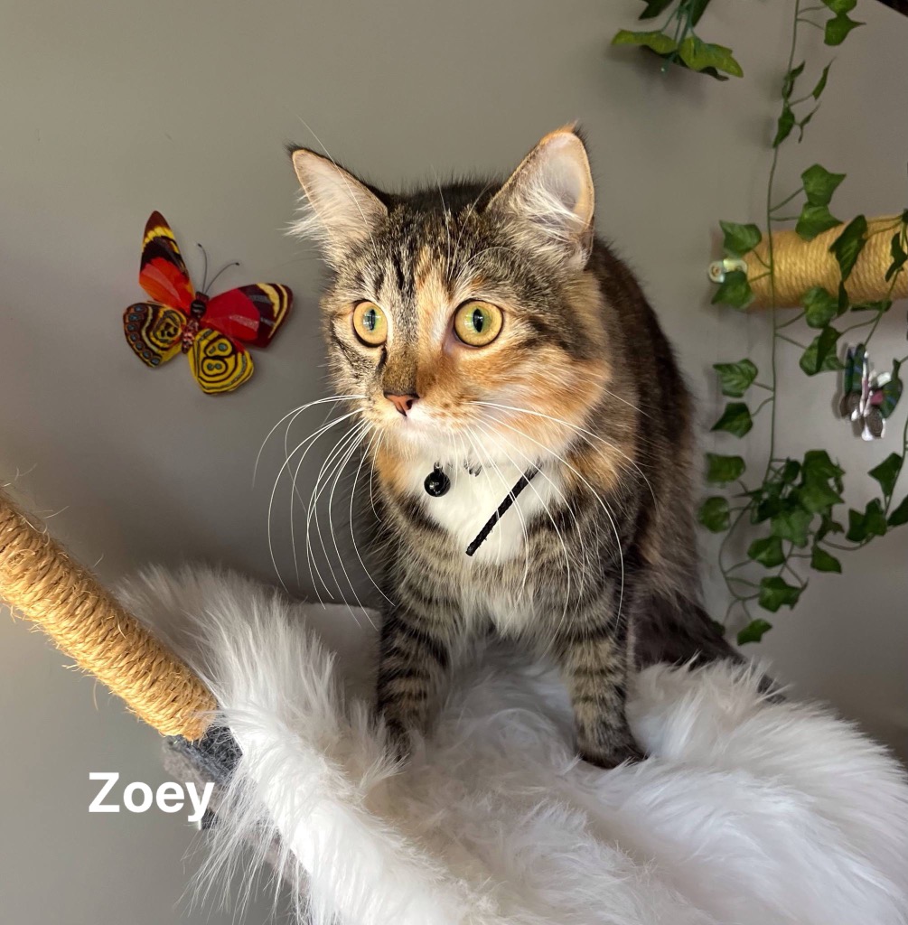 Zoey embodies a perfect blend of independence and friendliness, always on the lookout for the next adventure and a lovely spot to curl up for a nap. Are you ready to welcome this delightful cat into your home and provide the warm, loving environment she dreams of? Zoey is eagerly anticipating her next chapter with her new family, bringing love, charm, and snuggles galore.