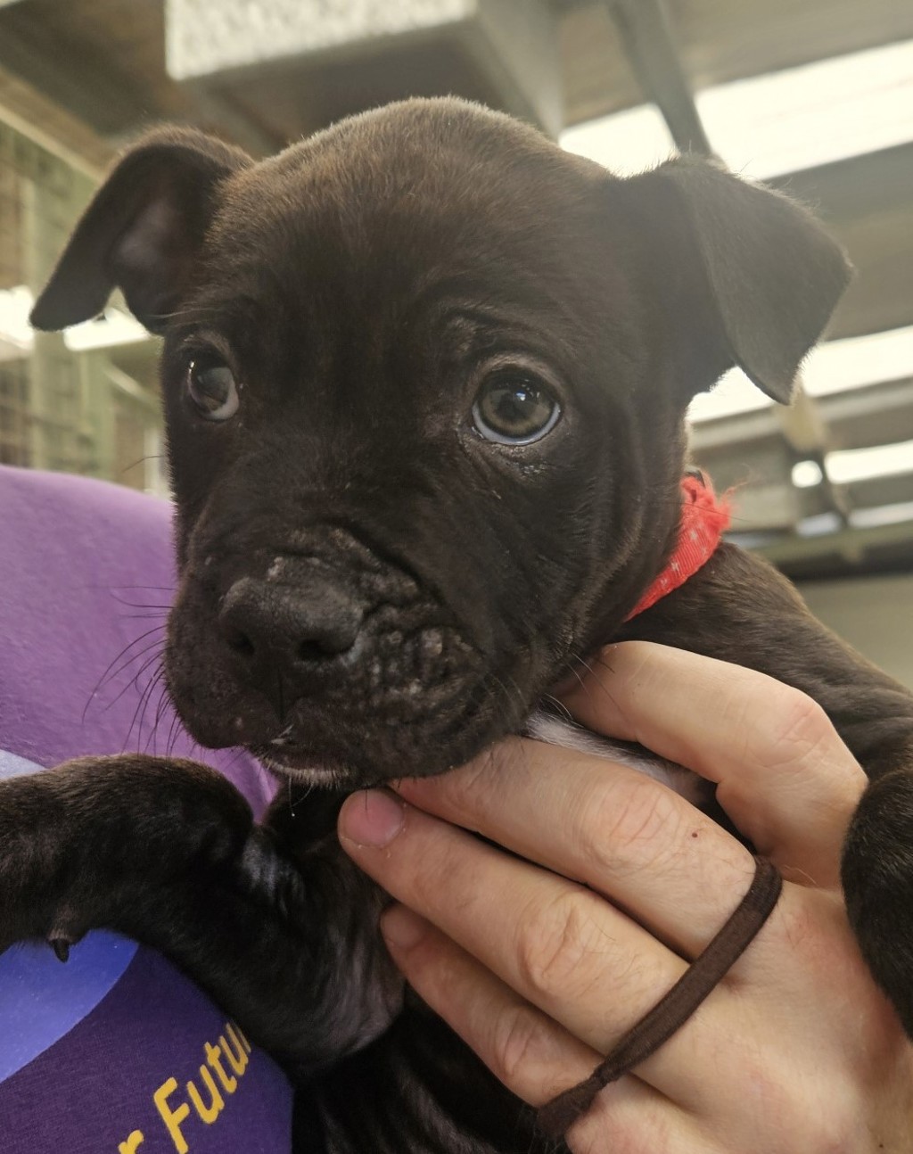 Hello there! My name is Buck and I'm a charming and playful Staffy puppy, approximately 8 weeks old. I'm eagerly waiting to find my forever family!