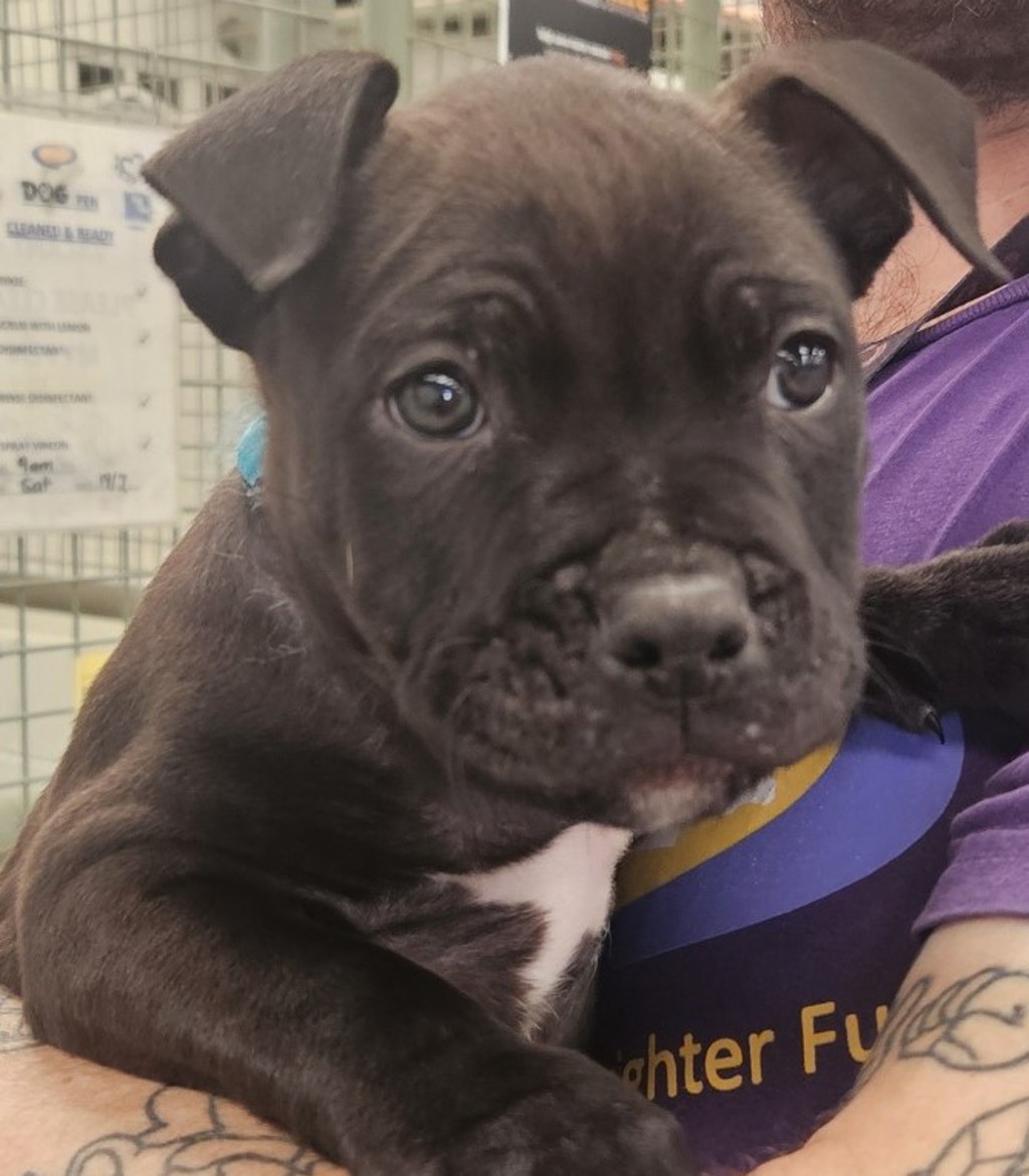 Hello there! My name is Yeehaw and I'm a charming and playful Staffy puppy, approximately 8 weeks old. I'm eagerly waiting to find my forever family!