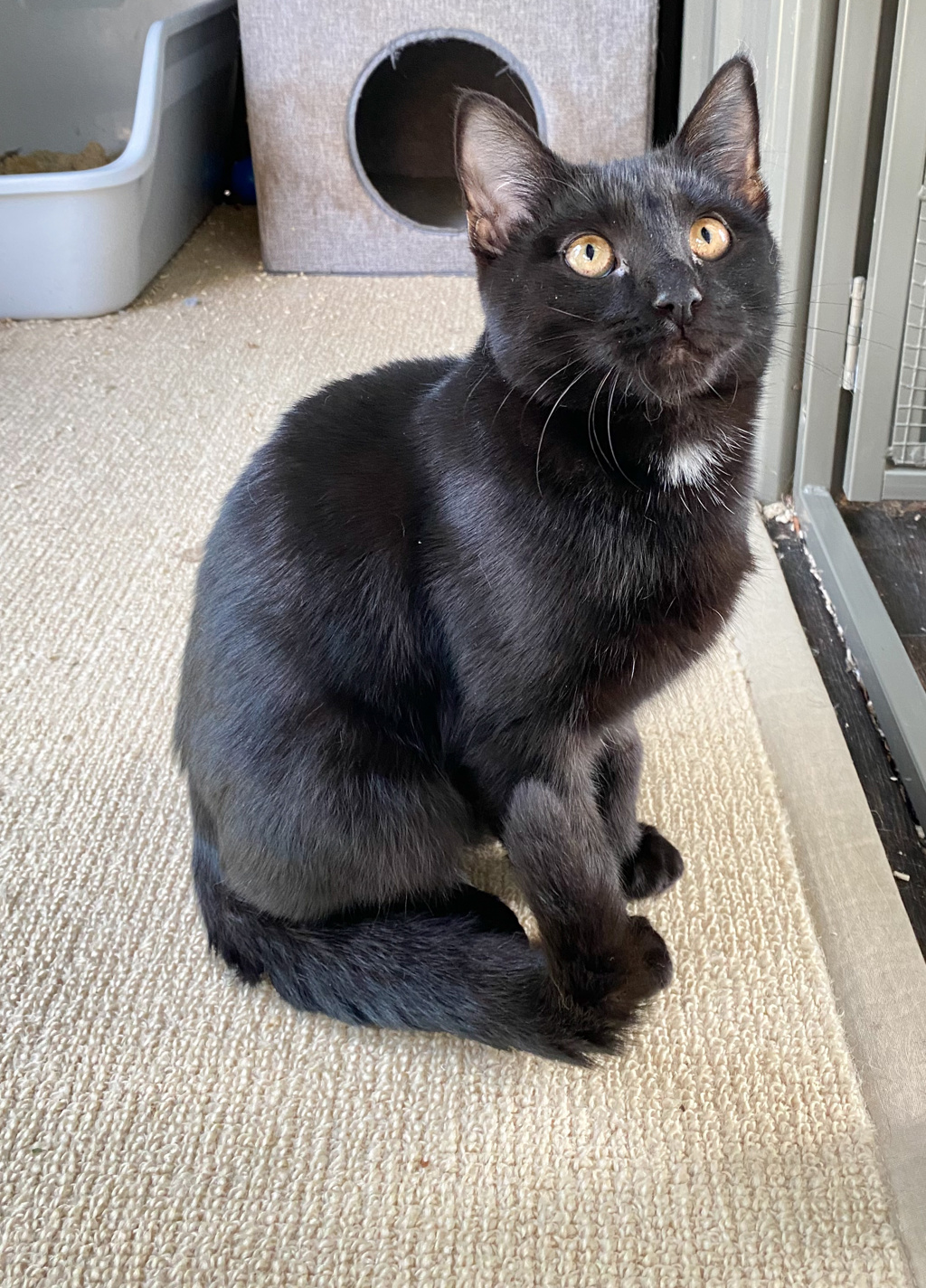 Meet super friendly Inky! He just loves being around people, a really sweet outgoing boy. He also gets on well with other cats after a few days to get used to them.