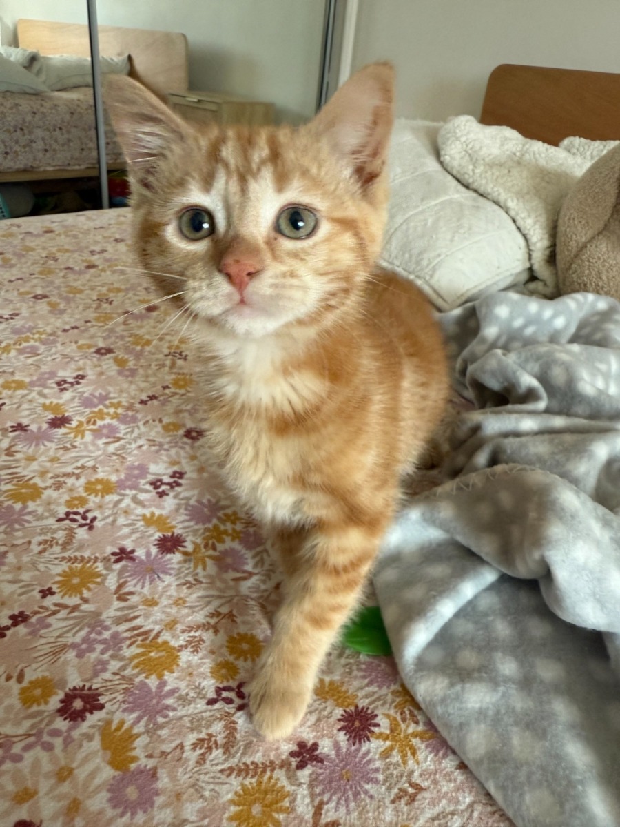 Get ready to be captivated by Pebbles, the fearless and fabulous female lead of her ginger gang! This stunning kitten is a true explorer, always the first to venture into new places and eagerly leading her brothers into exciting adventures.