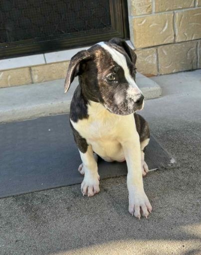 My sister and I came into care not too long ago, and we're believed to be around 14 weeks old. Everyone thinks we're Neapolitan Mastiff crosses, which means we're going to grow up to be big girls—so I hope you have some space for me to stretch out when I nap.