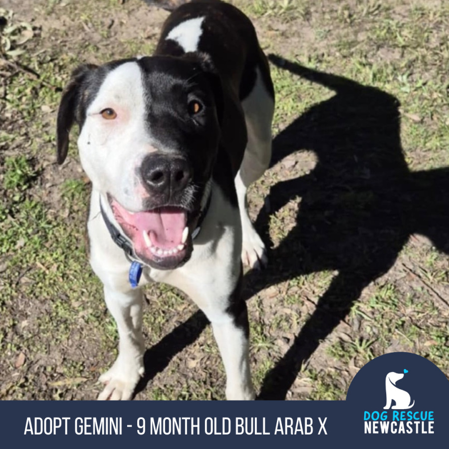 Gemini is a female 9 month old Bull Arab x with the most beautiful markings. She is a bubbly young girl bursting with personality and energy, She's the ultimate mix of playful spirit and sweet- natured charm, always ready for her next game, cuddle or car ride.