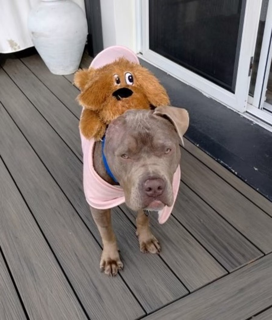 Despite facing more challenges than most, Nala, our resident ray of sunshine greets every day with her tail wagging and an unstoppable zest for life. Even after enduring an ear amputation, she’s not missed a beat— in fact, she’s determined to make the most of every moment, joyfully chasing after her toys like a pup and relishing every adventure. Although she only has one ear to hear you with, she listens with her whole heart.