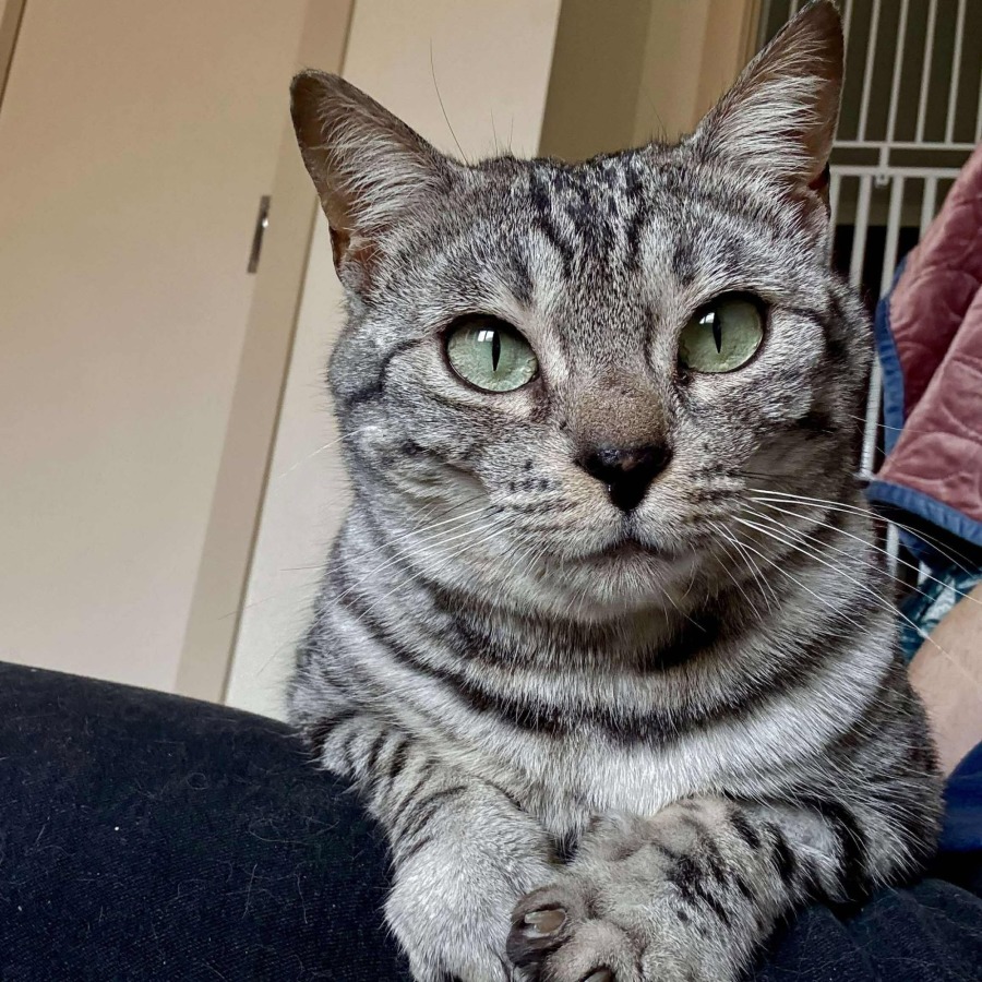 Her shimmery silver spotted coat is simply mesmerizing, and her playful antics are sure to bring a smile to your face every day. Cookie Lafufu is an active and engaging cat who thrives on interaction and enrichment.