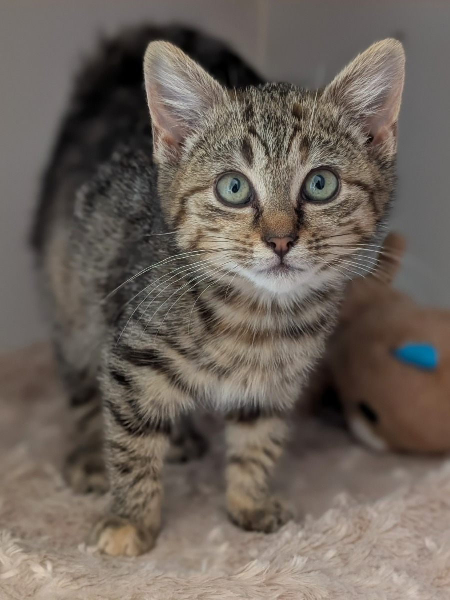 If you're looking for a kitten who's affectionate, calm, and surely ready to blossom into a loving feline friend, Blip is well on her way to becoming the cherished member of a family who can shower her with love and attention. She's ready to continue her journey of growth and exploration alongside someone who treasures her charming company.