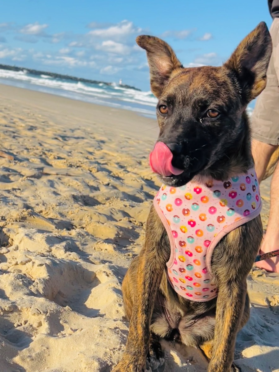 She's still very much a puppy, full of playful antics and bursts of boundless energy. Stella embraces playtime with gusto, enjoying hard play sessions before happily flopping down for a well-deserved nap. Her adorable ears are a constant source of amusement, with one charmingly curled, they tell a captivating story of her mood and curiosity, shifting with every sound and sight.
