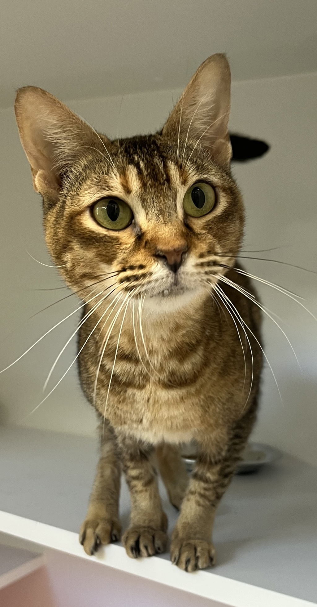 Violet is a sweet and social Bengal cat who thrives in a structured home with gentle companionship. Violet is quite vocal and chatty. When given the choice, she's affectionate and loves being near her people. Violet would do best in a home with another confident and friendly cat, as she tends to model her behaviour after other cats, which helps her feel secure. She might be reserved at first, but she blossoms into a loving companion once she's settled. Slow introductions are key, and it's important to space out resources, especially during mealtimes, so the cats don't feel like they're competing. With the right environment, Violet will make a wonderful addition to your family.